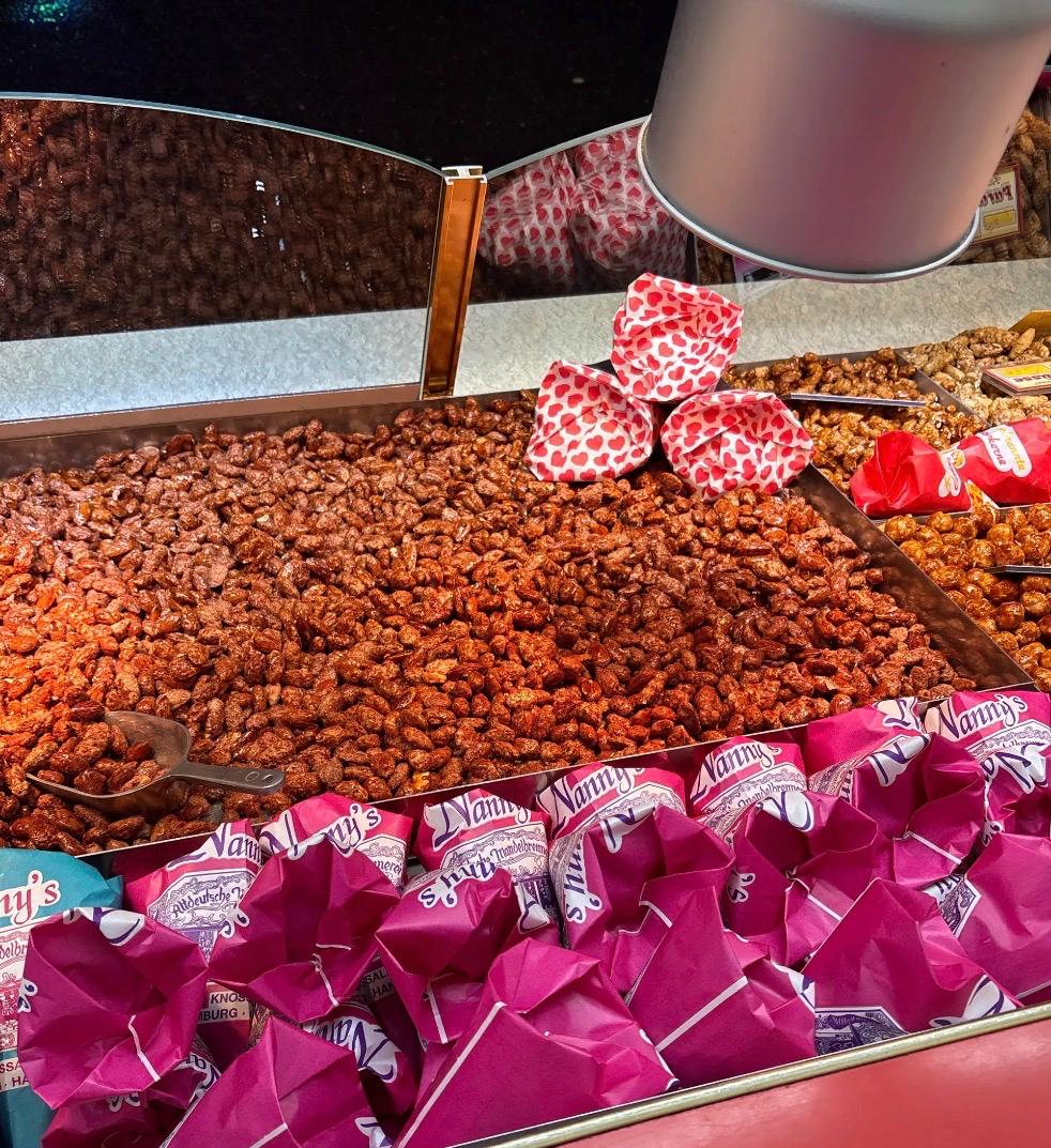 Unsere Produkte – von frisch gebrannten Mandeln über eine große Auswahl an Nüssen bis hin zu Zuckerwatte, Popcorn und Schokoladenfrüchten mit echter Callebaut-Schokolade – werden mit Sorgfalt und Erfahrung hergestellt.